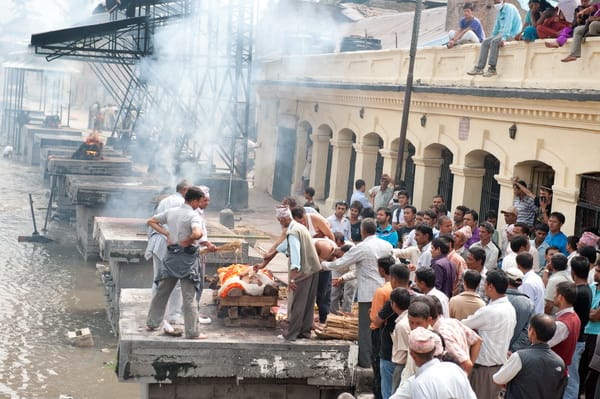 Есть места, священные для индуистов. Считается, что сожжение тела в таком месте размыкает круг реинкарнаций и освобождает душу. В наших путешествиях мы посещали такие места дважды. В древнем городе Варанаси (Индия), на священной реке Ганг и в самом центре Катманду (Непал). Жизнь и смерть здесь идут своим чередом. Не так, как цивилизованном обществе, где все отдельно. Здесь все буквально, все рядом. Тела сжигают на глазах у родственников на открытом огне. Рядом бурлит жизнь большого города. Как только костер догорел и останки сбрасывают в воду, мальчишки ныряют за добычей - там может оказаться что-то золотое или ценное. Никто их не гоняет оттуда - это их право, право неприкасаемых. Тысячелетиями этот уклад повторяется вновь и вновь. Можно только порадоваться за эти освобожденные души, нашедшие тут дорогу в небо. Туристов из этих мест тоже не выгоняют. Сидите, просветляйтесь, пытайтесь понять, как устроена вселенная и как далеко заблудился в ней западный человек. Мы любим Непал. Любим Катманду. Мы любим жизнь. Здесь мы учимся принимать ее бесконечный круг.