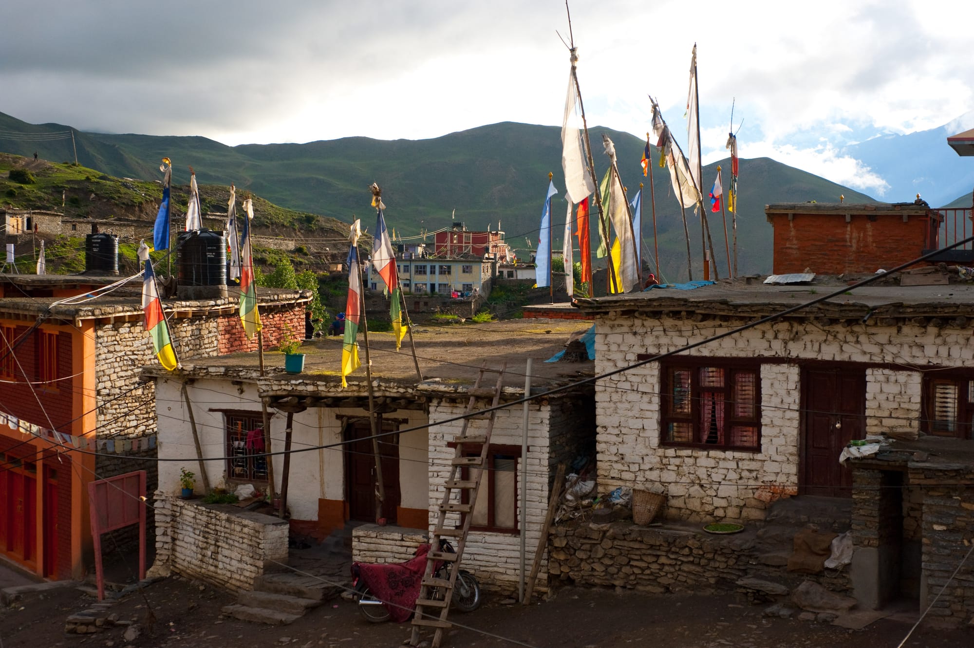 Полет над Гималаями. Нижний Мустанг. Прогулка в деревню Кагбени. Ночевка в Кагбени. Пейзажная съемка в режимное время в горах. Знакомство с традиционным тибетским бытом.